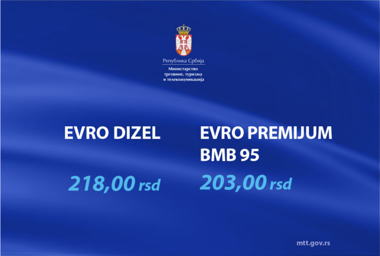 Ministarstvo trgovine, turizma i telekomunikacija saopštilo je najvišu maloprodajnu cenu derivata nafte za period od 15 časova 8. jula 2022. godine do 15 časova 15. jula 2022. godine. Nova maksimalna cena evro dizela narednih sedam dana biće 218 dinara, dok…