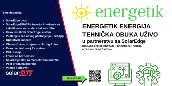 Shodno tome Energetik energija organizuje “Tehničku obuku uživo” u partnerstvu sa proizvođačem SolarEdge.