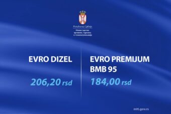 Evrodizel će se u ovom periodu prodavati po ceni od 206,20 dinara za litar, a motorni benzin evropremijum BMB 95 za 184 dinara za litar.