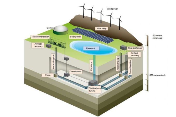 Snaga od 200 megavata biće proizvedena pomoću vetrogeneratora, solarnih panela i postrojenja na biomasu, koji će biti instalirani na površini iznad rudnika, a deo energije će se proizvoditi pomoću vode iz jezera nastalog u iskopinama rudnika, koje ima kapacitet da primi milion kubnih metara, u koje bi voda mogla da se izliva pomoću gravitacione sile.