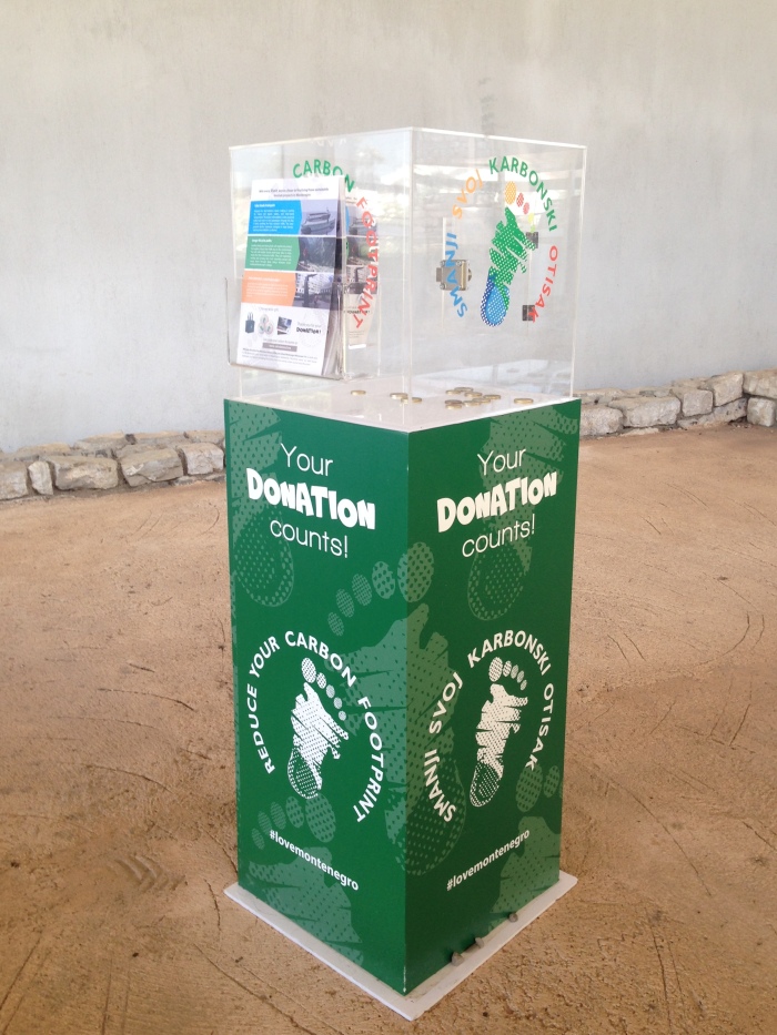 Crna Gora teži postati deo “Carbon Neutral Travel & Tourism“ projekta, kao mlada zelena destinacija. U tom cilju je razvila program koji pruža mogućnost turistima da smanje svoj štetan uticaj na prirodu. Prikupljanje donacija sprovode: projekat „Towards Neutral Carbon Tourism“, UNDP, Ministarstvo održivog razvoja i turizma, Privredna komora i Vlada Crne Gore. Svakom donacijom postajete član pokreta Za zelenu Crnu Goru i pridružujete se globalnim naporima u borbi protiv klimatskih promena. Svoj štetan uticaj možete izračunati pomoću online kalkulatora (www.calculateco2.me), a donirati online putem na tabletima koji su uz kutije za donacije postavljeni na lokalitetu ,,Rimski mozaici’’ u Risnu i u kancelariji za prijavu boravka stranaca u Kotoru (Stari grad 328).