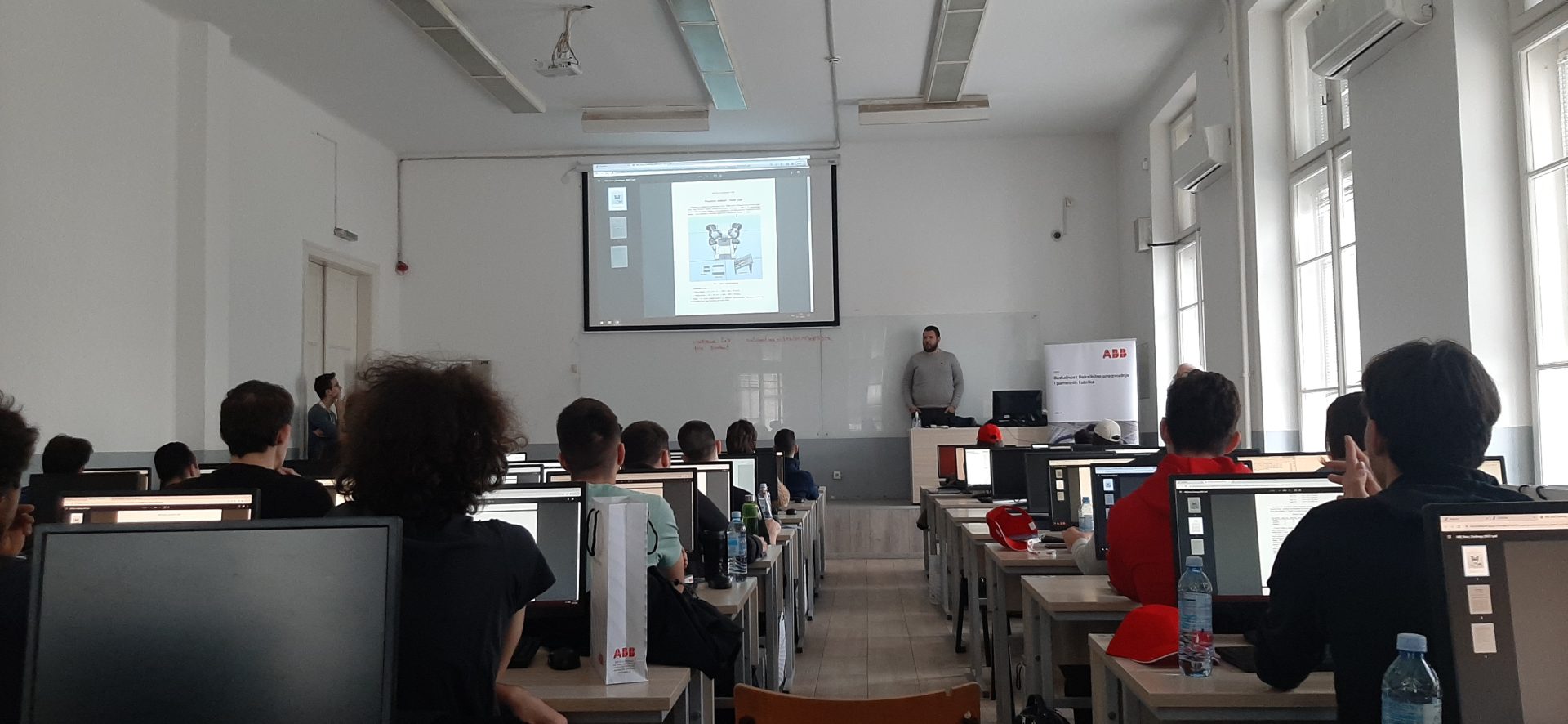 Milan Jevremović je pozdravio takmičare ispred kompanije ABB u Srbiji i poželeo im da s ovog takmičenja ponesu nova znanja, ali i interesovanje za robotiku, dodavši: “Prvo tak-mičenje pre šest godina kao da je juče bilo. Robotika vrlo brzo napreduje i u našoj zemlji, što prati i konstantnu potrebu za novim stučnjacima u ovoj oblasti. Nadam se da ćemo sarađivati ne samo na fakultetu, kako je naveo profesor Jovanović, nego i nakon fakulteta, i da ćete robotiku naći kao interesantnu granu kojom biste se bavili u svojim budućim pozivima. Najbolji od vas će imati prilike da rešenje do kog budu došli u današnjem delu takmičenja primene na pravom kolaborativnom robotu, u realnoj aplikaciji, a pobednici će, zajedno sa prošlogodišnjim pobednicima, otići na studijsko putovanje u ABB-ov Regionalni centar za robotske aplikacije mašinske obrade i opsluživanja u Italiji, tamo će moći da se iz prve ruke upoznaju sa novim tehnologijama i trendovima vezanim za sektor robotike, vide rad robotskih demo ćelija u okviru laboratorije pri samom Centru.”