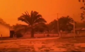 Potpuno crveno nebo iznad Indonezije posledica je šumskih požara. Požari se u Indoneziji ponavljaju svake godine i često prave dimnu zavesu duž čitave jugoistočne Azije.