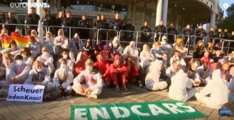 U četvrtak su, kada je Sajam automobila u Frankfurtu zvanično otvoren, aktivisti Grinpisa razvili velike transparente na kojima su modele automobila nazvali “klimatskim ubicama”.