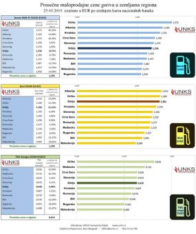 Potrošači u Srbiji i dalje mogu da kupe benzin po ceni koja je na nivou regularnog proseka, dok je prosečna maloprodajna cena evrodizela u Srbiji najviša u odnosu na sve zemlje sa kojima se graničimo, a niža je samo od cene dizela u Grčkoj i Albaniji.